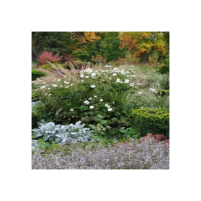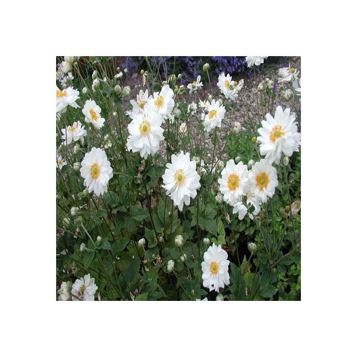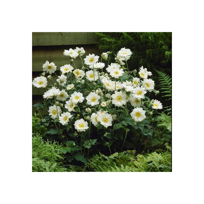 Zawilec "Whirlwind" to bylina o białych kwiatach 100 cm wysokości. Jego ciemnozielone liście, trójdzielne i ząbkowane, stanowią eleganckie tło dla innych roślin. Ciekawostką dotyczącą tej odmiany jest fakt, że nazwa "Whirlwind" (tłumaczone jako "Wir"), doskonale odzwierciedla energię i lekkość, jaką wnosi do ogrodu. Kiedy ta piękna roślina rozkwita, wydaje się, że kwiaty tańczą w wirze, tworząc malowniczy pejzaż. Są one duże, półpełne w białym kolorze z żółtym środkiem o lekko skręconych płatkach. Gęsto wyrastają na długich pędach, unosząc się ponad kępą liści od sierpnia. To niezwykłe zjawisko sprawia, że staje się nie tylko ozdobą ogrodu, ale także źródłem inspiracji i pozytywnej energii. Wprowadzenie tej odmiany do przestrzeni zielonej to nie tylko dekoracyjny wybór, ale także sposób na zainfekowanie swoje otoczenie radością i urodą natury. Po zakończeniu kwitnienia i zaschnięciu liści przycinamy tuż nad ziemią.