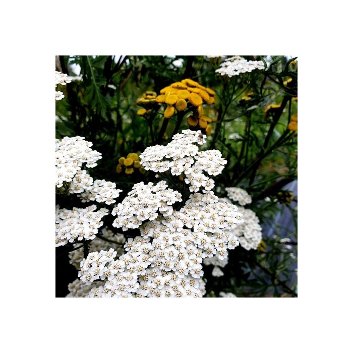Krwawnik o białych kwiatach wysokości 60 cm.