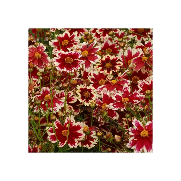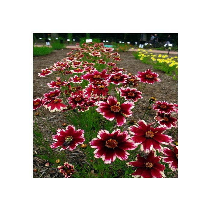 Nachyłek Ruby Frost to bylina o czerwonej barwie z białymi akcentami na końcach kwiatów wysokości 60 cm, tworzy gęste kępy wyprostowanych pędów, które dodają ogrodowi elegancji. Te kępy są nie tylko atrakcyjne wizualnie, ale także stanowią doskonałe tło dla kwitnących kwiatów, tworząc harmonijny i krajobraz. Liście tej rośliny są wąskie i luźno rozmieszczone, a ich jasnozielony kolor kontrastuje pięknie z intensywnością koloru kwiatów. Kwiaty tej rośliny to prawdziwy klejnot ogrodu. Ich intensywnie krwisto czerwony kolor z delikatnym białym obrzeżeniem płatków robi wrażenie i przyciąga uwagę od pierwszego spojrzenia. Kwiaty te pojawiają się w masowych ilościach od czerwca tworząc niesamowity spektakl kolorów w ogrodzie. Zainwestuj w Nachyłek Coreopsis 'Ruby Frost', aby cieszyć się niepowtarzalnym urokiem i pięknem każdego dnia w swoim ogrodzie!