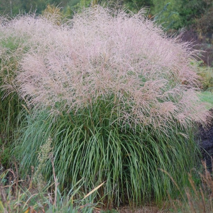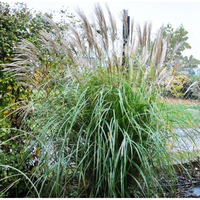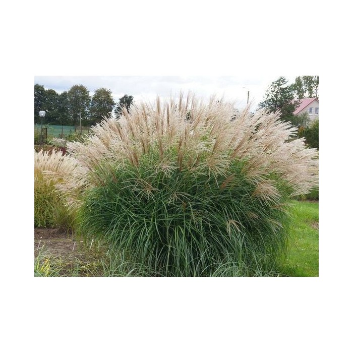 Miskant ten tworzy gęste kępy z wąskich, zielonych z białym nerwem pośrodku liści wysokości 1,5m. Kwitnie od września miedzianymi wiechami. Ta odmiana to zdecydowanie niezbędny element w każdym ogrodzie. Późną jesienią po zaschnięciu całej kępy związujemy ją w tzw chochoła, co pomaga uchronić roślinę przed niekorzystnymi warunkami zimą. Wiosną ścinamy całość nisko przy ziemi.