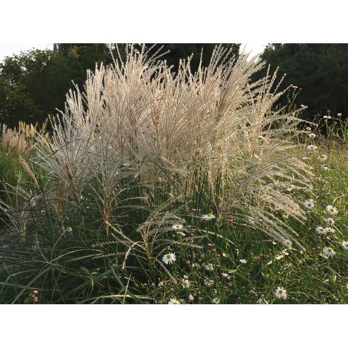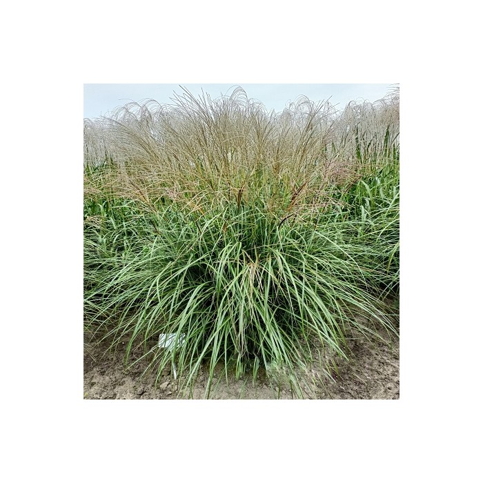 Miskant tworzący kępy z cienkich, przewieszających się liściach osiągając wysokość 1,6 m. Kwiaty osadzone na sztywnych, prostych łodygach pojawiają się na przełomie sierpnia -września. Kwiat barwy kremowej. Imponująca trawa.Jesienią po zaschnięciu całej kępy związujemy ją w chochoła. Wiosną ścinamy całość przy ziemi.