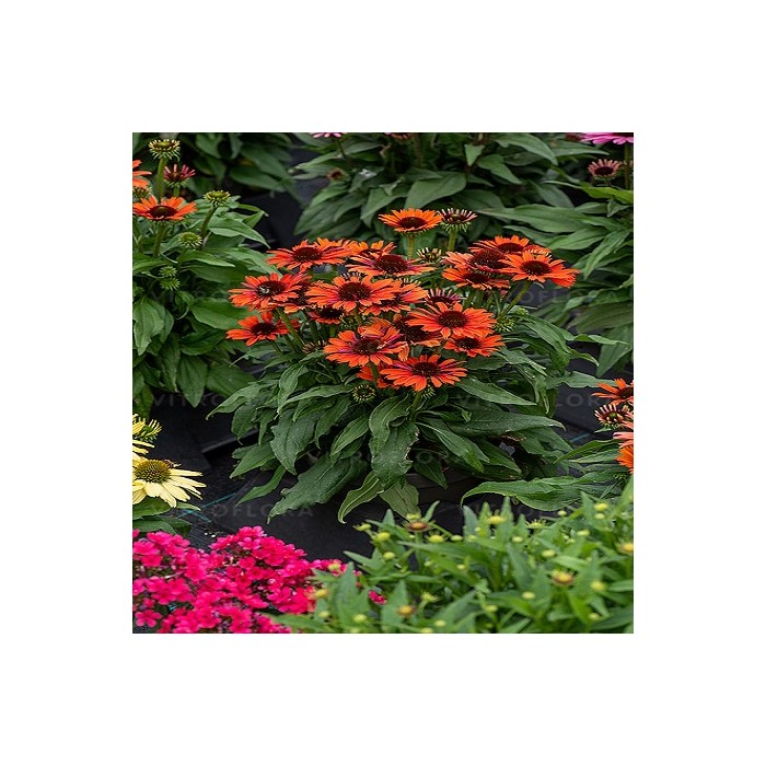 Jeżówka o ciemnopomarańczowych kwiatach wysokości 50 cm.