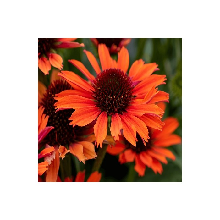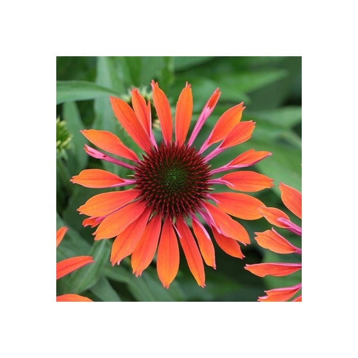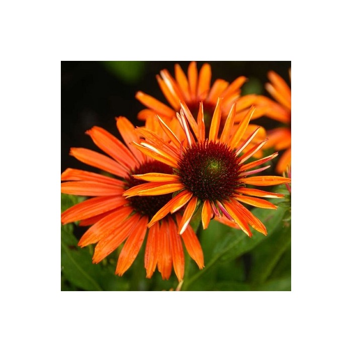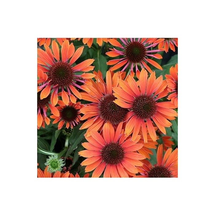 Jeżówka o ciemnopomarańczowych kwiatach, które zaczynają się pojawiać już w czerwcu i trwa to, aż do września. Kwiaty zbudowane są z wypukłej, kolczastej, brązowo-pomarańczowej główki, która otulona jest języczkowatymi płatkami w perłowo pomarańczowym kolorze. Roślina tworzy gęste kępy z ciemnozielonych, ostro zakończonych liści, z której wyrastają sztywne pędy, a na nich rozkwita się czarująco widowiskowy kwiat. Wysokość rośliny 50 cm. Jeżówka oprócz tego, że doskonale zdobi i wypełnia kolorem miejsca w ogrodzie jest rośliną miododajną i chętnie odwiedzana jest przez pszczoły i motyle co jest dodatkową zaletą. Stanowią niezastąpiony element barw na rabatach prze całe lato. Uprawa Jeżówek nie jest kłopotliwa, dlatego polecana jest dla każdego miłośnika ogrodu. Należy zapewnić jej dobrze przepuszczalne, ale wilgotne podłoże. Dla obfitszego kwitnienia powinna być nawożona i regularnie obcinany przekwitający kwiatostan. Preferuje miejsca w pełni słoneczne, ponieważ w cieniu jej kwiaty mogą być mniejsze i mniej liczne. Roślinę należy przycinać przed nadejściem przymrozków, dlatego najlepiej zrobić to późną jesienią, po przekwitnięciu.