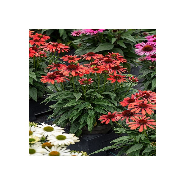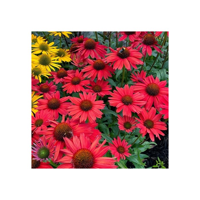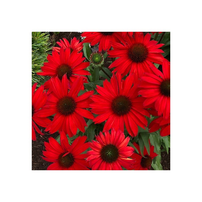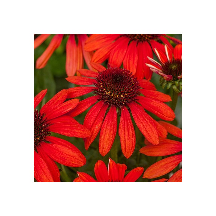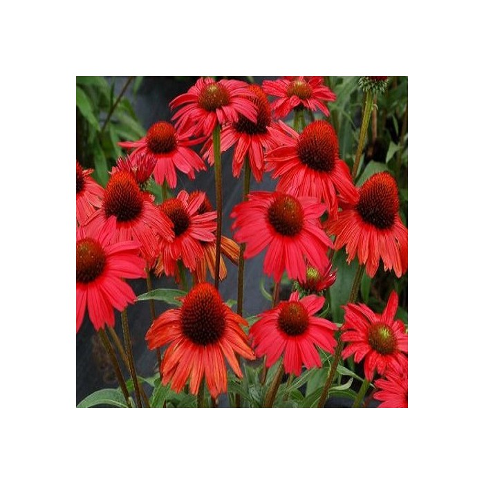 Jeżówka o ciemnoczerwonych kwiatach, które zaczynają się pojawiać od lipca i trwa to, aż do października. Kwiaty zbudowane są z wypukłej, kolczastej, bordowej główki, która otulona jest języczkowatymi płatkami w perłowym krwistoczerwonym kolorze. Roślina tworzy gęste kępy z ciemnozielonych liści, z której wyrastają sztywne pędy, a na nich rozkwita się uroczy kwiat. Wysokość rośliny 50 cm. Jeżówka oprócz tego, że doskonale zdobi i wypełnia kolorem miejsca w ogrodzie jest rośliną miododajną i chętnie odwiedzana jest przez pszczoły i motyle co jest dodatkową zaletą. Stanowią niezastąpiony element barw na rabatach prze całe lato. Uprawa Jeżówek nie jest kłopotliwa, dlatego polecana jest dla każdego miłośnika ogrodu. Należy zapewnić jej dobrze przepuszczalne, ale wilgotne podłoże. Dla obfitszego kwitnienia powinna być nawożona i regularnie obcinany przekwitający kwiatostan. Preferuje miejsca w pełni słoneczne, ponieważ w cieniu jej kwiaty mogą być mniejsze i mniej liczne. Roślinę należy przycinać przed nadejściem przymrozków, dlatego najlepiej zrobić to późną jesienią, po przekwitnięciu.
