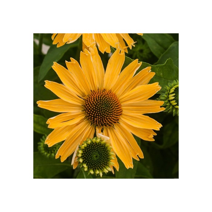 Jeżówka o jasnożółtych kwiatach, które zaczynają się pojawiać od czerwca i trwa to, aż do września. Kwiaty zbudowane są z wypukłej, kolczastej, pomarańczowo-brązowej główki, która otulona jest języczkowatymi płatkami w perłowym, jasnożółtym kolorze. Roślina tworzy zwarte, dobrze rozkrzewione kępy z ciemnozielonych liści, z której wyrastają sztywne pędy, a na nich rozkwita się cudnej urody kwiat. Wysokość rośliny 45 cm. Jeżówka oprócz tego, że doskonale zdobi i wypełnia kolorem miejsca w ogrodzie jest rośliną miododajną i chętnie odwiedzana jest przez pszczoły i motyle co jest dodatkową zaletą. Stanowią niezastąpiony element barw na rabatach prze całe lato. Uprawa Jeżówek nie jest kłopotliwa, dlatego polecana jest dla każdego miłośnika ogrodu. Należy zapewnić jej dobrze przepuszczalne, ale wilgotne podłoże. Dla obfitszego kwitnienia powinna być nawożona i regularnie obcinany przekwitający kwiatostan. Preferuje miejsca w pełni słoneczne, ponieważ w cieniu jej kwiaty mogą być mniejsze i mniej liczne. Roślinę należy przycinać przed nadejściem przymrozków, dlatego najlepiej zrobić to późną jesienią, po przekwitnięciu.