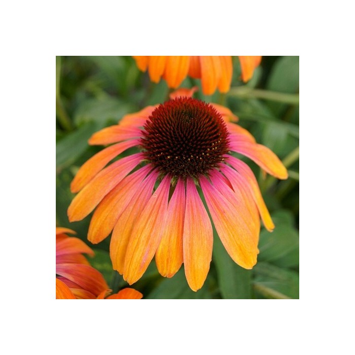 Jeżówka o różowo-pomarańczowych kwiatach, które zaczynają się pojawiać początkiem lipca i trwa to, aż do września. Kwiaty zbudowane są z wypukłej, kolczastej, brązowej główki, która otulona jest języczkowatymi płatkami w dwubarwnym kolorze. Mają one pomarańczową barwę przechodzącą w ostry róż w kierunku środka kwiatu. Roślina tworzy gęste kępy z soczyście zielonych liści, z której wyrastają sztywne pędy, a na nich rozkwita się olśniewający widokiem kwiat. Wysokość rośliny 60 cm. Jeżówka oprócz tego, że doskonale zdobi i wypełnia kolorem miejsca w ogrodzie jest rośliną miododajną i chętnie odwiedzana jest przez pszczoły i motyle co jest dodatkową zaletą. Stanowią niezastąpiony element barw na rabatach prze całe lato. Uprawa Jeżówek nie jest kłopotliwa, dlatego polecana jest dla każdego miłośnika ogrodu. Należy zapewnić jej dobrze przepuszczalne, ale wilgotne podłoże. Dla obfitszego kwitnienia powinna być nawożona i regularnie obcinany przekwitający kwiatostan. Preferuje miejsca w pełni słoneczne, ponieważ w cieniu jej kwiaty mogą być mniejsze i mniej liczne. Roślinę należy przycinać przed nadejściem przymrozków, dlatego najlepiej zrobić to późną jesienią, po przekwitnięciu.