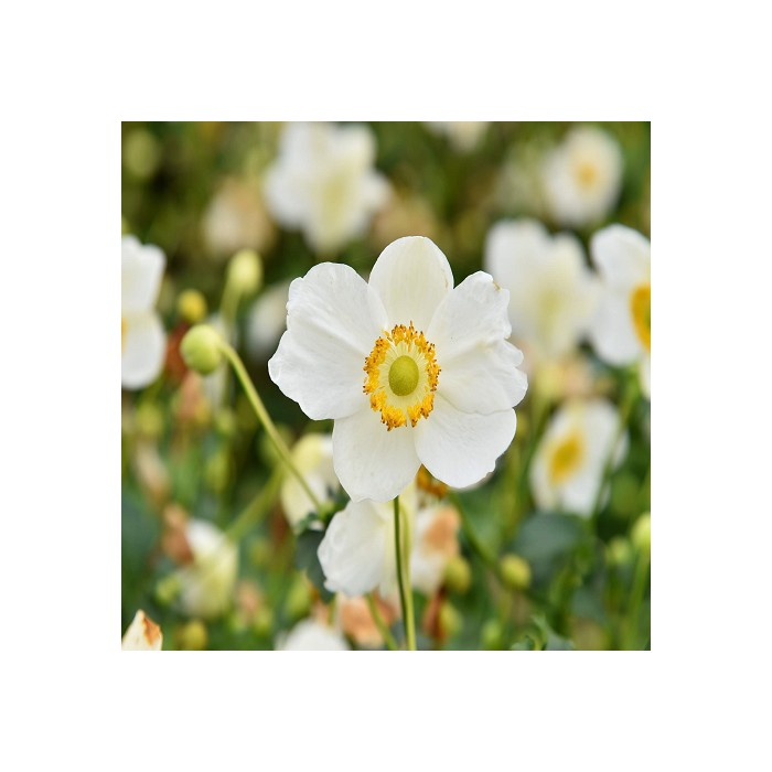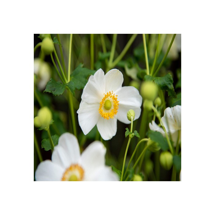 Zawilec "Letnia bryza śniegu" to bylina o białych kwiatach 50 cm wysokości, to urocza odmiana charakteryzująca się pięknymi, białymi płatkami otaczającymi promienne żółte pręciki. Kwiaty rozwijające się na długich łodygach wybijają się spomiędzy intensywnie zielonych, trójdzielnych i ząbkowanych liści tworząc malowniczy kontrast. Fascynujące jest to, że ten wyjątkowy zawilec rozpoczyna swój taniec kolorów już w lipcu. Odkryj urok tej rośliny, która nie tylko wzbogaci Twój ogród pięknem białych kwiatów, ale także dostarczy niezapomnianych chwil obserwacji motyli i pszczół. Wyjątkowe połączenie eleganckich liści i malowniczych kwiatów sprawi, że Twój ogród ożyje kolorami i życiem przyrody. Nie czekaj, wprowadź harmonię barw i piękna do swojego ogrodu już teraz! Po zakończeniu kwitnienia i zaschnięciu liści przycinamy tuż nad ziemią.