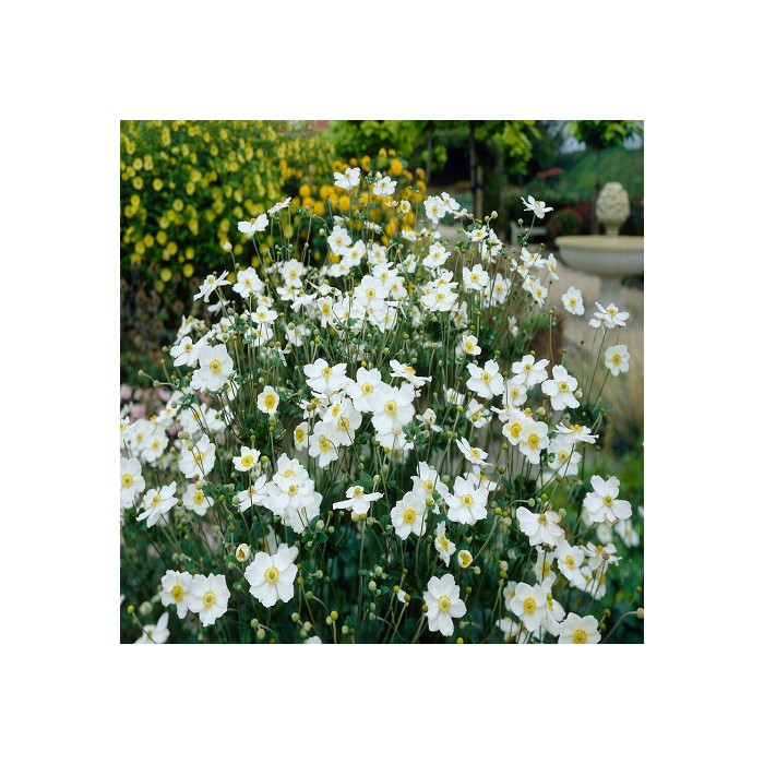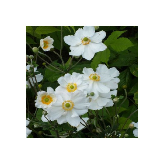 Zawilec Andrea Atkinson to bylina o białych, pojedyńczych kwiatach 100 cm wysokości, to urocza odmiana charakteryzująca się pięknymi, białymi płatkami otaczającymi promienne żółte pręciki. Kwiaty rozwijające się na długich łodygach wybijają się spomiędzy intensywnie zielonych liści tworząc malowniczy kontrast. Fascynujące jest to, że ten wyjątkowy zawilec rozpoczyna swój taniec kolorów już w lipcu. Odkryj urok tej rośliny, która nie tylko wzbogaci Twój ogród pięknem białych kwiatów, ale także dostarczy niezapomnianych chwil obserwacji motyli i pszczół. Wyjątkowe połączenie eleganckich liści i malowniczych kwiatów sprawi, że Twój ogród ożyje kolorami i życiem przyrody. Nie czekaj, wprowadź harmonię barw i piękna do swojego ogrodu już teraz! Po zakończeniu kwitnienia i zaschnięciu liści przycinamy tuż nad ziemią.