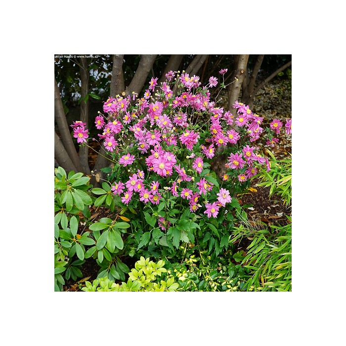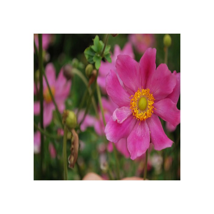 Zawilec Bressingham Glow to bylina o ciemnoróżowych kwiatach 70 cm wysokości. Jego ciemnozielone liście, trójdzielne i ząbkowane, stanowią eleganckie tło dla innych roślin. Kiedy ta piękna roślina rozkwita, wydaje się, że kwiaty tańczą w wirze, tworząc malowniczy pejzaż. Są one duże, półpełne w białym kolorze z żółtym środkiem o lekko skręconych płatkach. Gęsto wyrastają na długich pędach, unosząc się ponad kępą liści od sierpnia. To niezwykłe zjawisko sprawia, że staje się nie tylko ozdobą ogrodu, ale także źródłem inspiracji i pozytywnej energii. Wprowadzenie tej odmiany do przestrzeni zielonej to nie tylko dekoracyjny wybór, ale także sposób na zainfekowanie swoje otoczenie radością i urodą natury. Po zakończeniu kwitnienia i zaschnięciu liści przycinamy tuż nad ziemią.