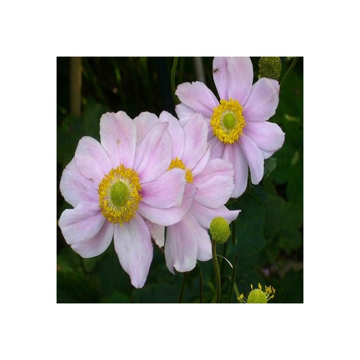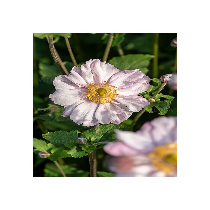Zawilec o różowo-srebrzystych kwiatach wysokości 70 cm.