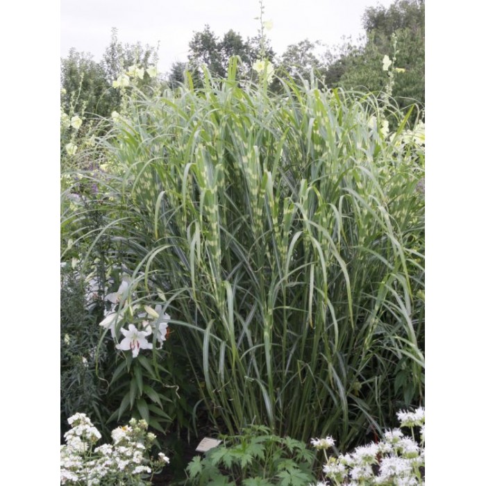 Miscanthus Giraffe-trawa o centkowanym ulistnieniu wysokości 220 cm.