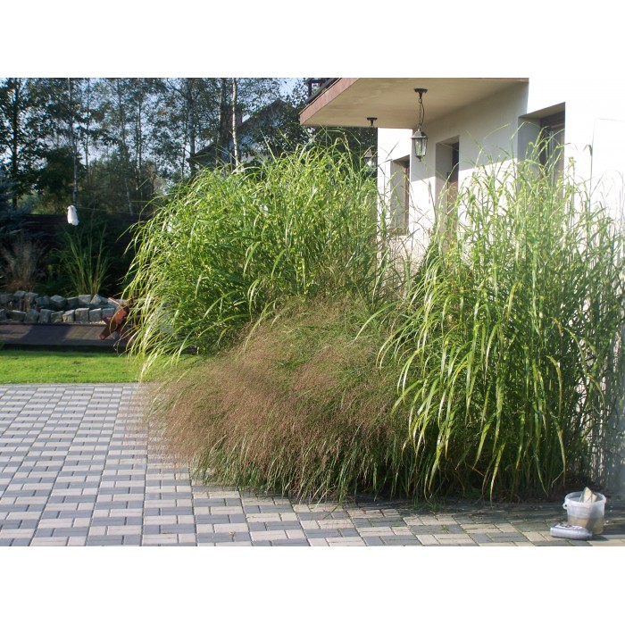 Miskant Giraffe, to centkowana trawa 220 cm wysokości, okazała i majestatyczna tworząca gęstą kępę, która nie tylko zdobi, ale staje się centralnym punktem ogrodowego krajobrazu. Liście to istne arcydzieło natury. Szerokie, ozdobione poprzecznymi, beżowymi paskami, tworzą kontrastową paletę kolorów, dodając ogrodowi niezaprzeczalnego wdzięku. To prawdziwy magnes dla oczu! Ale to nie koniec atrakcji! Pod koniec lata Miskant rozkwita w pełnej krasie, prezentując różowe kwiatostany, które odważnie wznoszą się ponad kępę. To widowiskowe zjawisko, które podkreśla wyjątkowość tej trawy ozdobnej. Jeśli marzysz o ogrodzie pełnym elegancji, zainwestuj w Miskanta 'Giraffe' - gwarancja szybkiego wzrostu i niepowtarzalnego piękna! Jesienią po zaschnięciu całej kępy związujemy ją w chochoła. Wiosną ścinamy całość przy ziemi.
